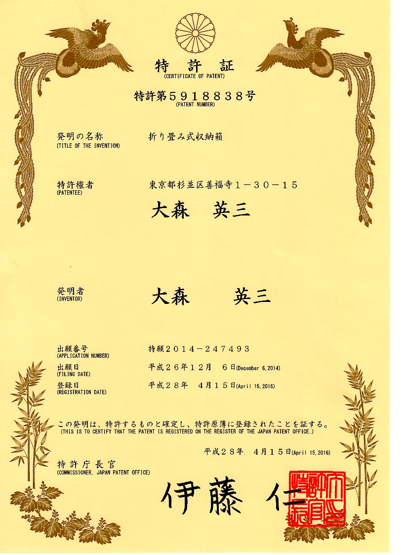 下記のとおり日本の特許を取得しました!