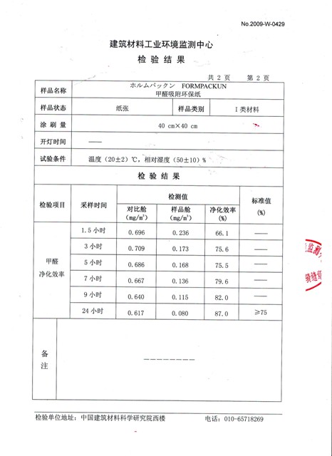 formaldehyde absorbing paper